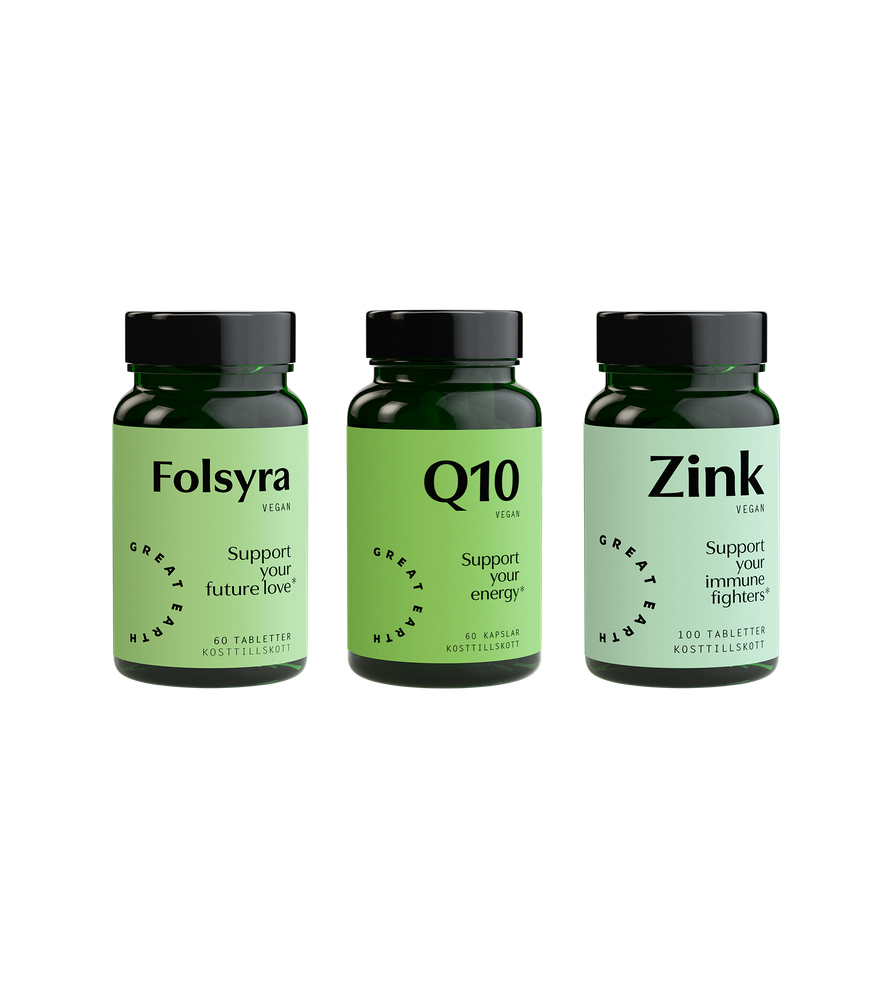Är det dags att kalla på storken? Vi vet att det kan vara stressigt att vänta på att stickan ska visa positivt. Därför har vi har byggt ihop ett paket med det som du behöver för att ge kroppen bra förutsättningar för normal fertilitet. Inget krångel, bara det du behöver.- Folsyra. Viktigt under de 12 första veckorna av en graviditet. För dig som planerar en graviditet är Folsyra bra att ha redo.
