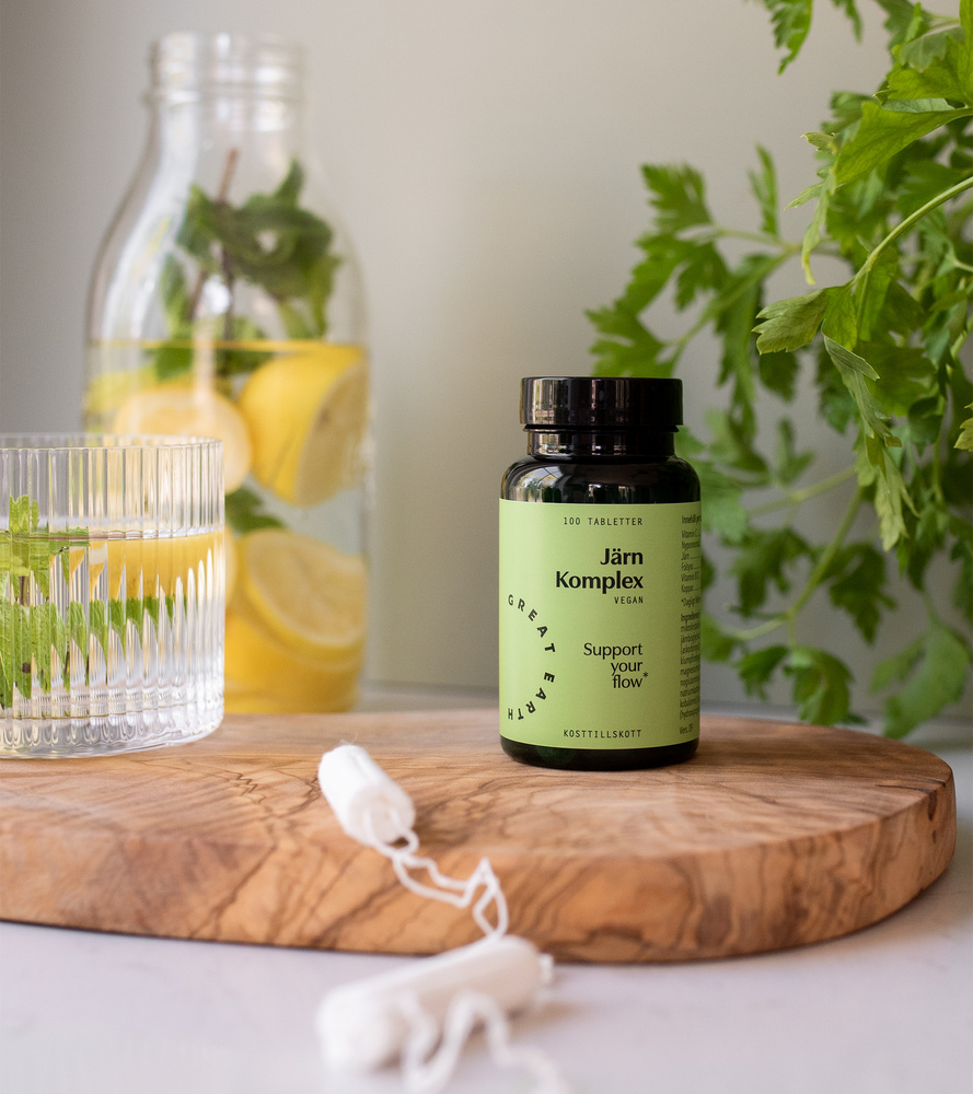 Är du kvinna? Blir du ofta trött och yr? Om svaret är ja är det stor sannolikhet att du har järnbrist. Det innebär att du inte producerar tillräckligt med röda blodkroppar som hjälper till att syresätta kroppen ordentligt. Järn har en viktig roll i celldelningsprocessen, och bidrar främst till normal bildning av röda blodkroppar och hemoglobin. Det hjälper till att skicka ut syre till kroppens celler och motverkar känslan av trötthet och utmattning. Varje tablett med Järn Komplex innehåller även C-vitamin, B12, nyponextrakt, folsyra och koppar.