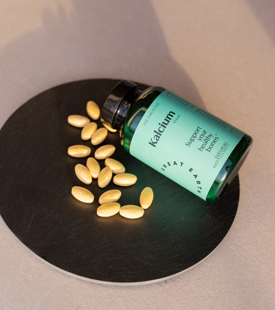 Kalcium bidrar till att bibehålla normal benstomme, muskelfunktion och energiomsättning, samt bidrar till matsmältningsenzymernas normala funktion.- Tillskott för starka ben