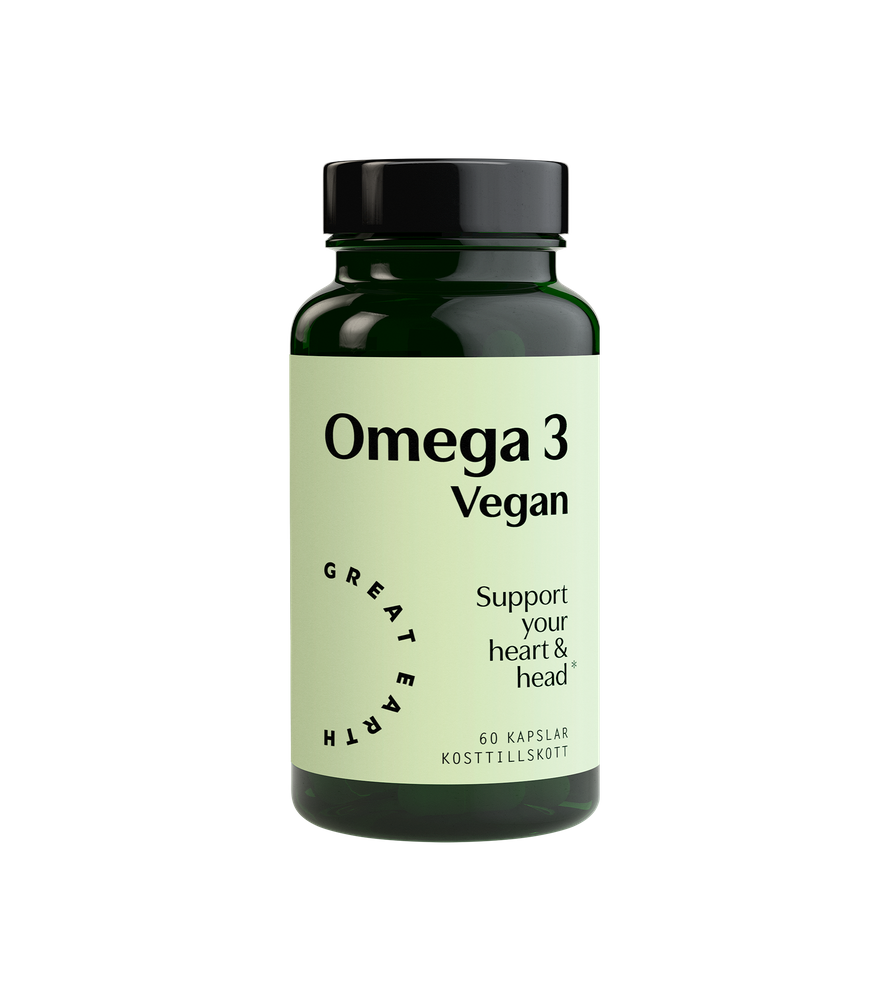 Algae are naturally rich in the fatty acids EPA and DHA, which contribute to the normal function of the heart, brain and vision. These fatty acids are also important for healthy-looking skin. Omega-3 is also important during pregnancy and breastfeeding, as DHA contributes to the normal development of the brain and eyes in the foetus and breastfed infant. The beneficial effect is obtained with a daily intake of 200 mg DHA in addition to the recommended daily intake of 250 mg DHA and EPA for adults.Normal leveranstid är 1 – 5 arbetsdagar från det att vi har bekräftat din beställning via e-post. Vid beställningar som registreras under helgdagar räknas leveranstiden från den första arbetsdagen efter avslutad helgdag.