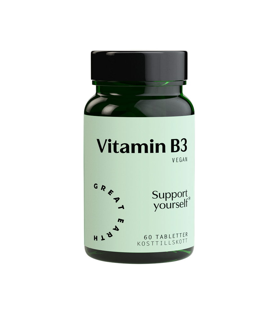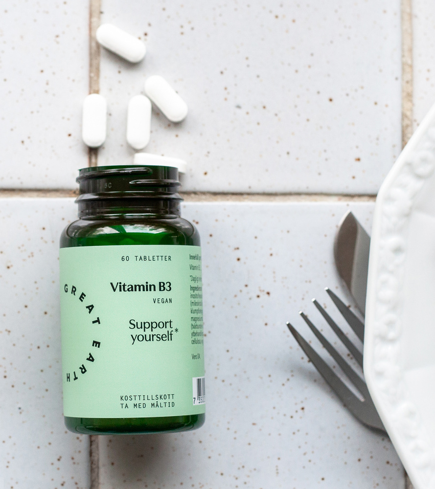 Om du går på p-piller eller om du inte äter så proteinrik kost kan det vara en bra idé att tillsätta lite extra vitamin B3, eller niacin som det även kallas. Det är bland annat viktigt för hud, slemhinnor och för kroppens omsättningen av kolhydrater, fett och protein. Det bidrar även till att bibehålla normal energiomsättning och till nervsystemets normala funktion.